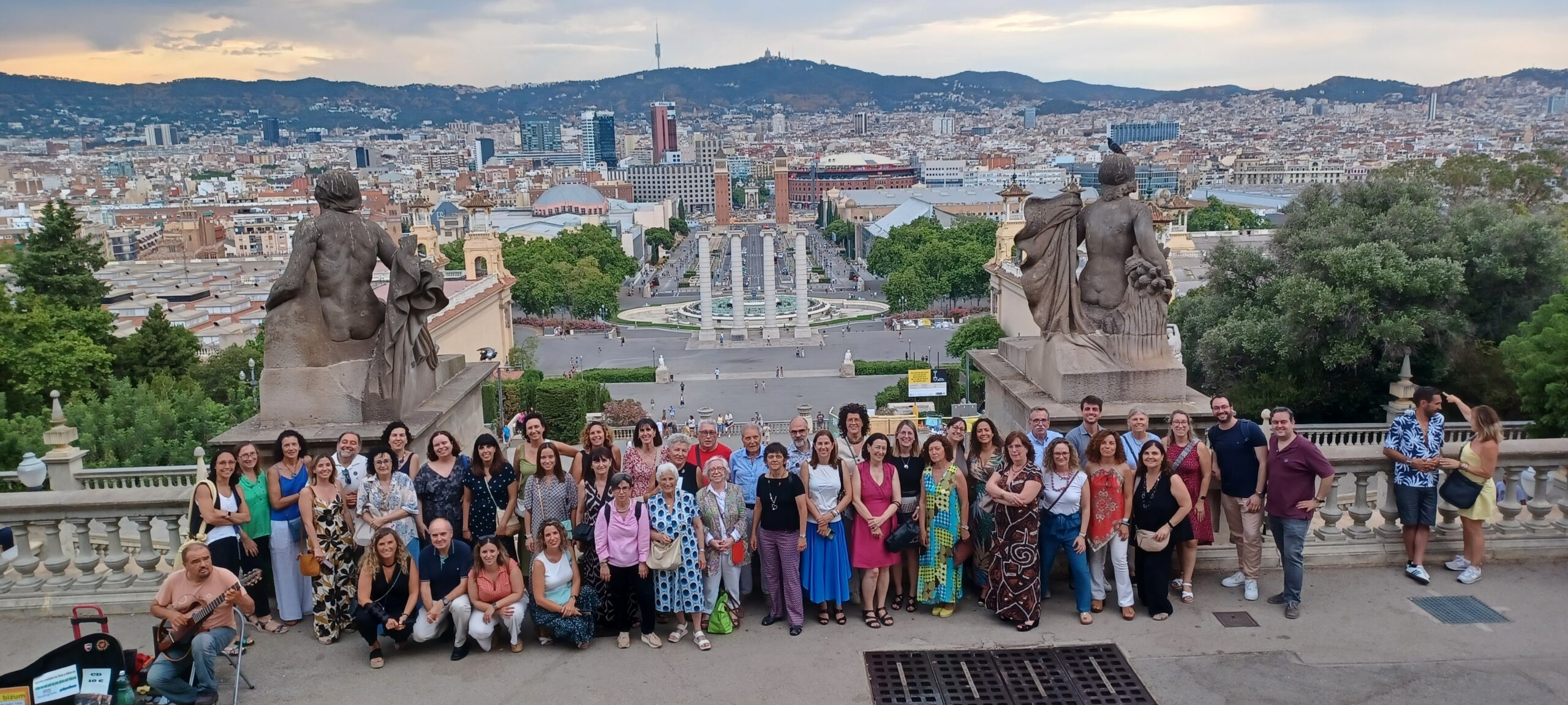 En esta ocasión, el marco no podía ser más inspirador: el Museu Nacional d’Art de Catalunya (MNAC). De la mano de una visita guiada, recorrimos siglos de historia plasmados en las salas dedicadas al románico y al modernismo, estilos que, cada uno a su manera, nos hablan de raíces, renovación y belleza. Como colofón, la panorámica desde las terrazas del Palau Nacional nos regaló unas vistas privilegiadas de Barcelona, que, incluso bajo un cielo algo encapotado, mantenía intacto su encanto y su magnetismo.